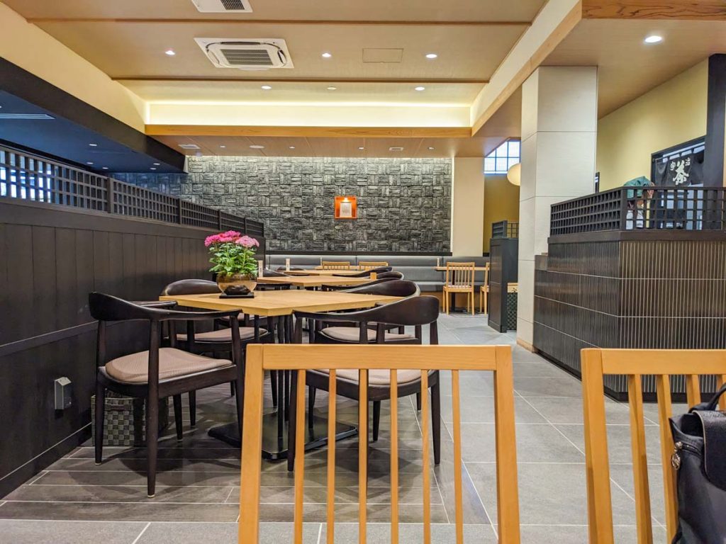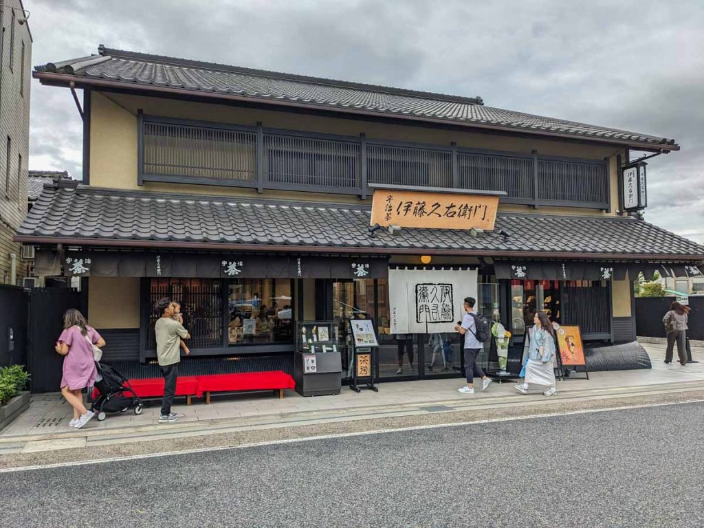 Situé à quelques pas seulement de la gare JR Uji, Ito Kyuemon est idéalement placé pour que les visiteurs de la ville du thé s’arrêtent pour regarder le menu ou la boutique savamment placé devant l’entrée du restaurant. Le menu coloré et les spécialités à base de matcha ont tout pour attirer un bon nombre de client potentiel, moi le premier. Je me laisse donc tenter facilement.