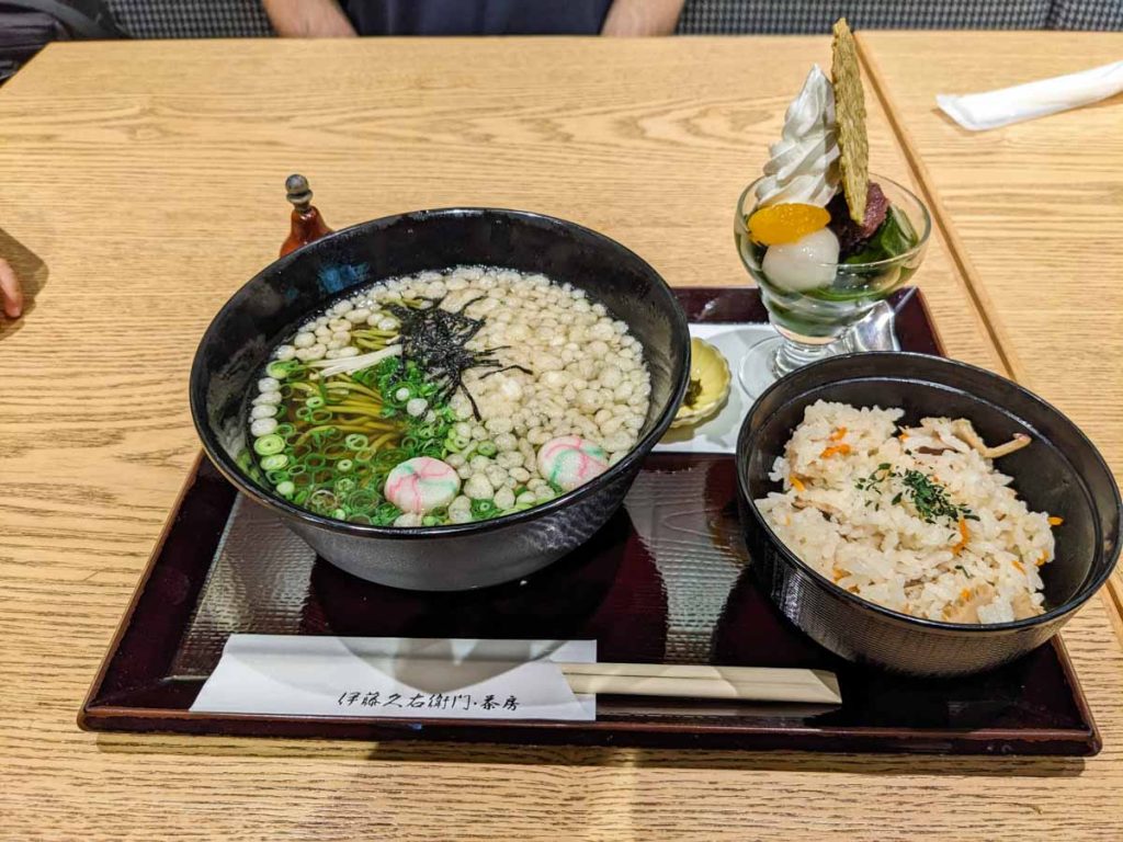 J’ai également commandé un matcha, spécialité de la ville et du restaurant, pour terminer mon repas. Malheureusement, celui-ci m’a laissé l’impression d’une qualité plus que moyenne. Le gout semble plutôt léger et adapté au gout des touristes, au détriment d’un gout authentique et de qualité. Très dommage, surtout que les tarifs eux, ne sont pas adapté à la qualité ni à la quantité servie.